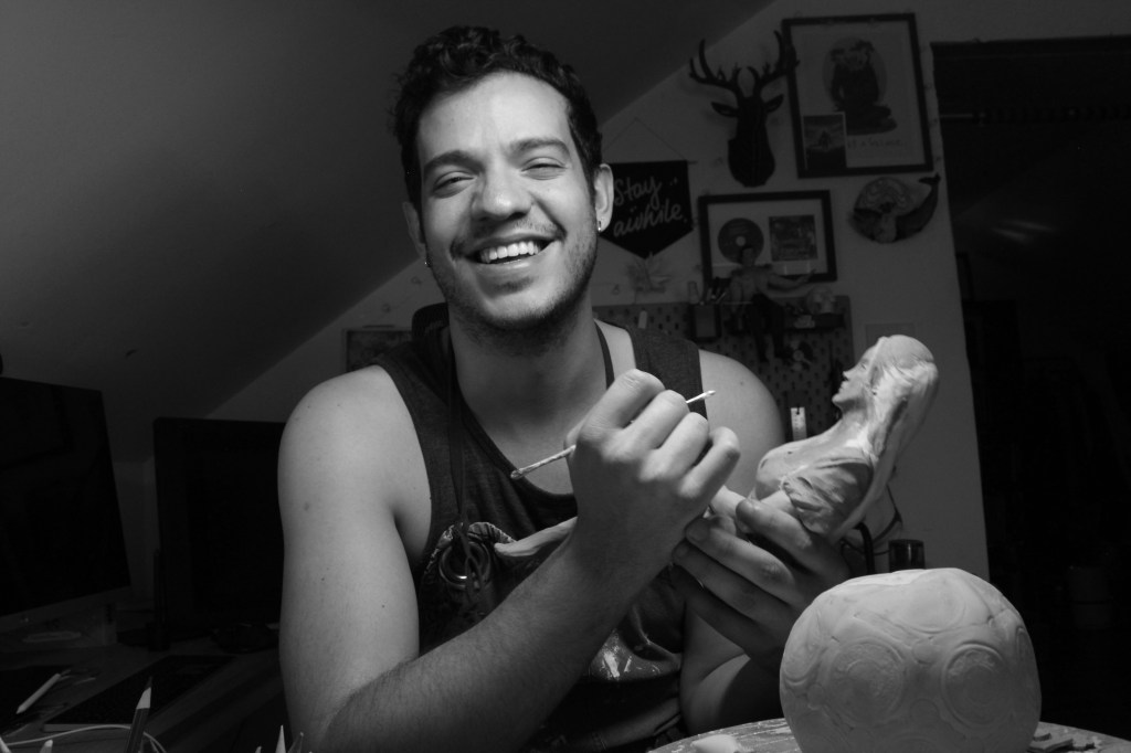 He studied illustration at Parsons School of Design where he explored a vast array of art making techniques including Puppet fabricating, Stop-motion animation, 2d animation, illustrative painting and drawing